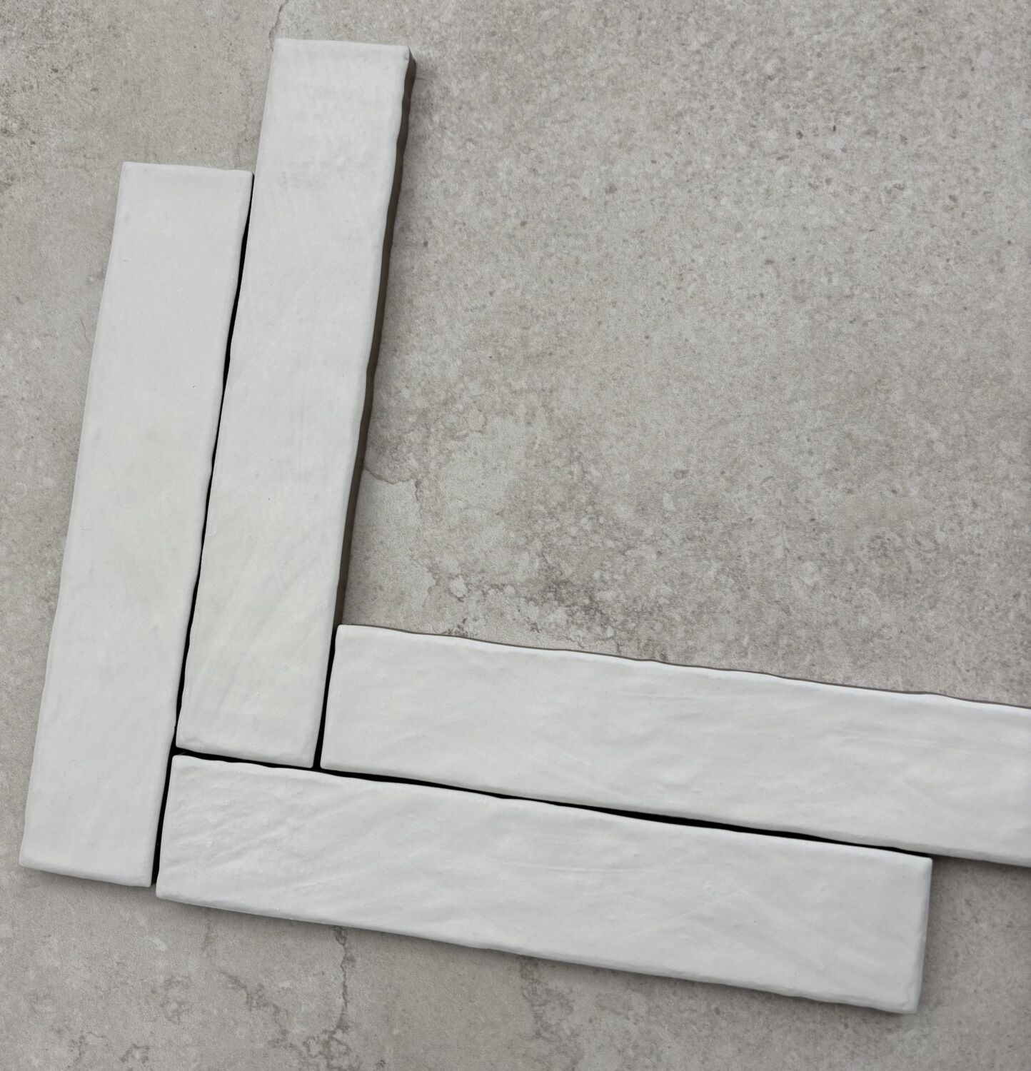 Pottery Blanc is a soft, chalky white porcelain tile with a gently handmade feel, offering subtle texture and a natural finish. Its elongated brick shape and softly uneven surface give it a relaxed, artisanal look that sits beautifully in both contemporary and traditional interiors.
