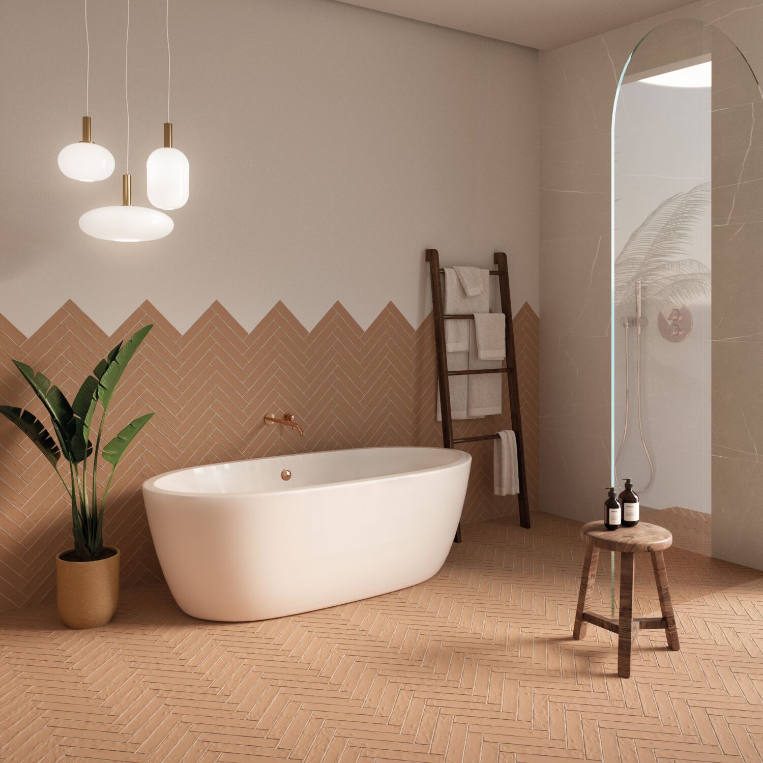 A warm natural terracotta coloured porcelain tile with a gently handmade feel, Pottery Cotto offers subtle texture and a clean, natural finish. Its elongated brick shape and softly uneven surface create a relaxed, artisanal look that works in both contemporary and traditional interiors.